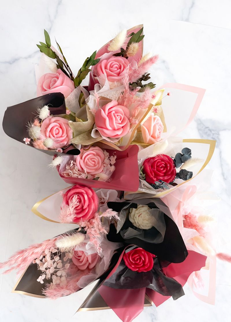 A handcrafted Valentine’s wax melt bouquet featuring sculpted wax florals and thoughtfully curated dried botanicals. Designed to melt beautifully and last beyond the moment, because love should linger.